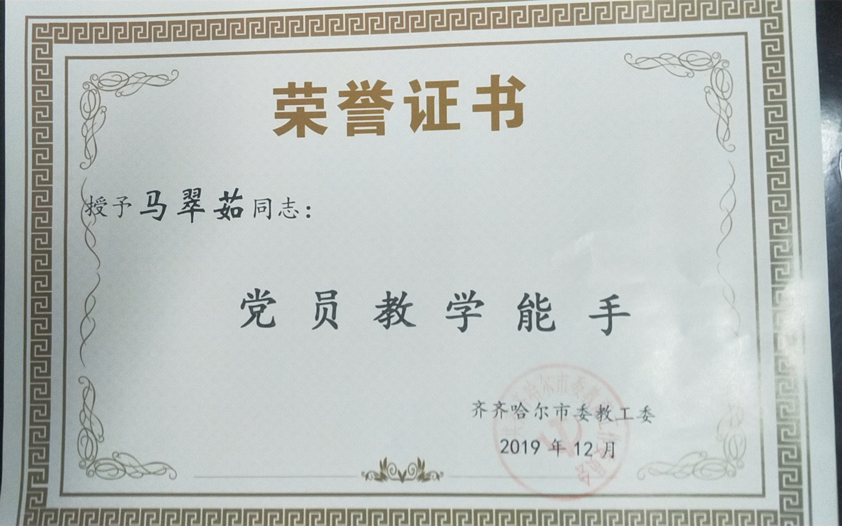 黑龙江分部马翠茹-党员教学能手